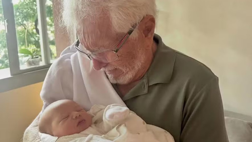 Carlos Alberto de Nóbrega conhece bisneto recém-nascido e se emociona na web