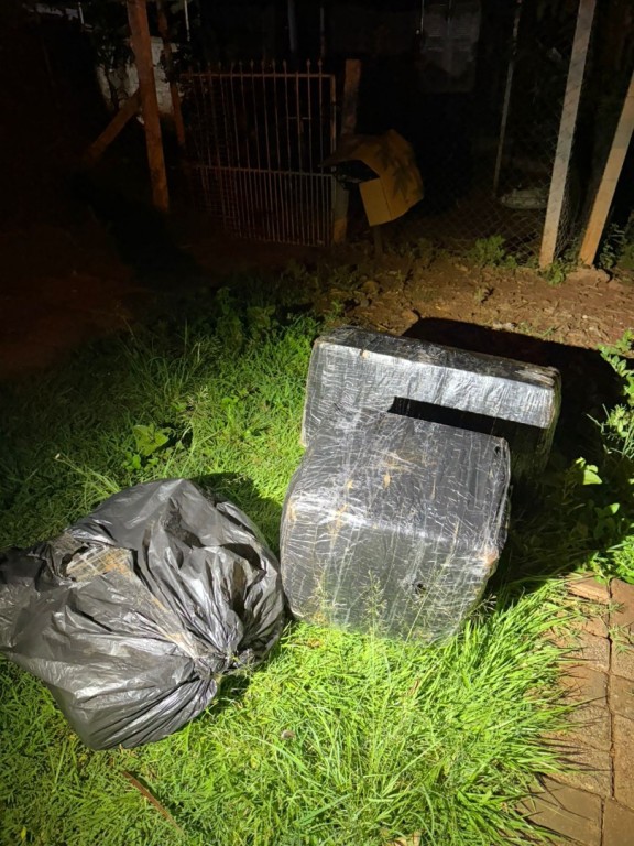 Diante da movimentação suspeita, os policiais deslocaram-se até a margem do Rio Paraná e localizaram três volumes abandonados.